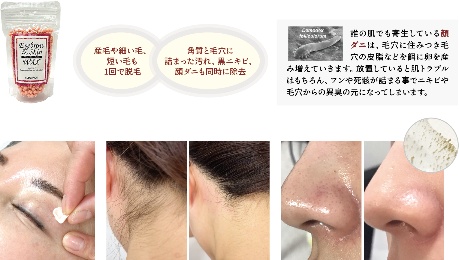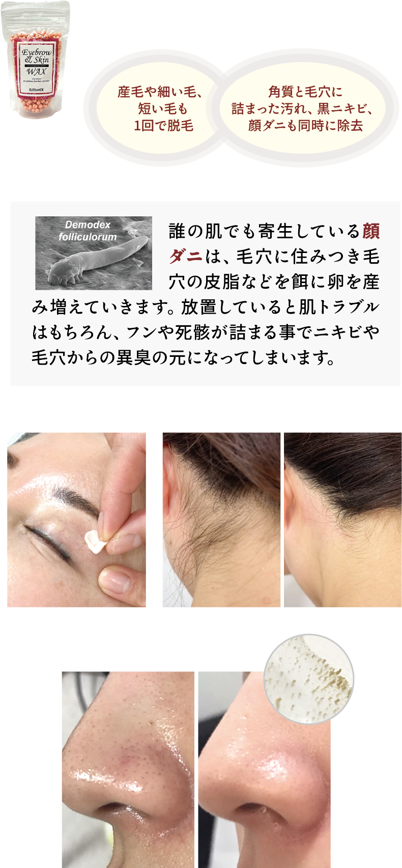 施術には、デリケートな肌のための成分でできた、安全で低融点のハードワックスを使用します。